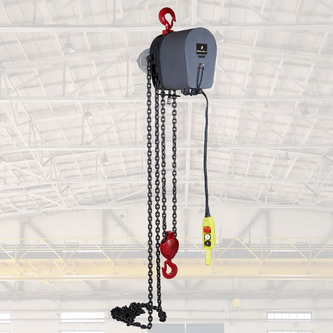 The durable hoist provides a capacity range of 0.5T to 2T and a maximum height of lift of up to 40 meters.